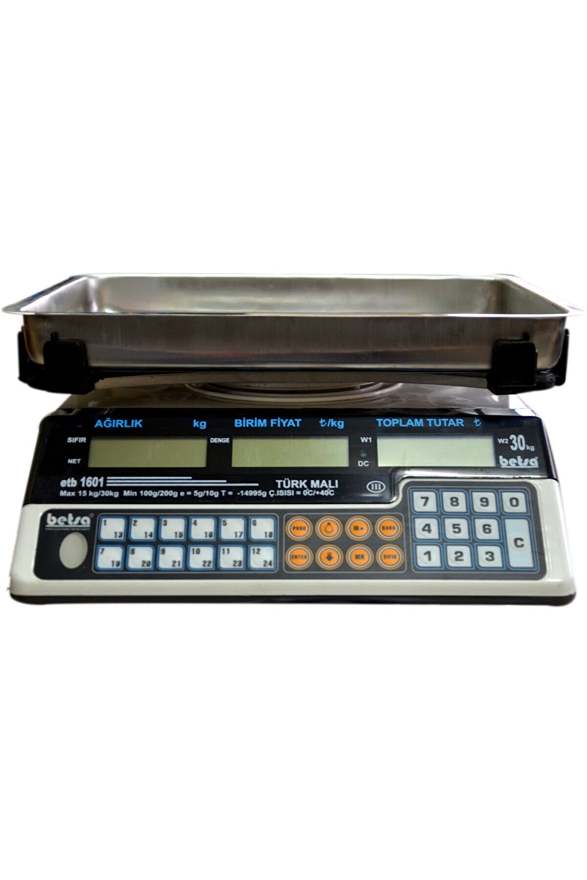 Yerli İmalat Yaygın Servis » 2014/31/AB Otomatik Olmayan Tartı Aletleri Yönetmeliğine Uygunluk » İkili Taksimat Yüksel Hassasiyet » 30kg Kapasite Seçenekleri» Paslanmaz Düz veya Çukur Kefe Seçeneği » 600 Saat Dahili Akü » Sık Ve Dayanıklı Tasarım » 24 Adet Birim Fiyat Hafızası » Arka Aydınlatmalı LCD Gösterge